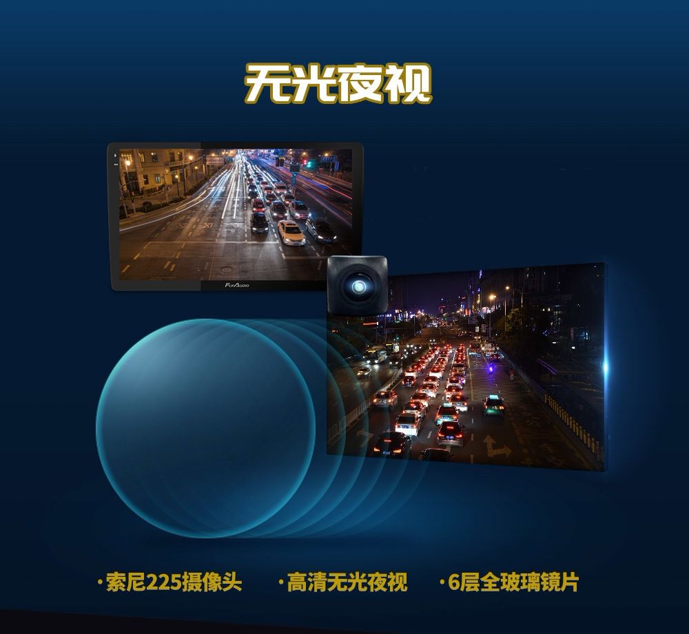 夜视难题一直以来不止是车主头疼的问题,同时也是品牌商努力的目标。飞歌360°全景(3D版)配置索尼225高清无光夜视摄像头,清晰灵动,色彩逼真,噪点少,夜间拍摄效果彷如白昼;6层全玻璃镜片,提高透光率,高感光智能采光技术夜间拍摄效果更清晰!