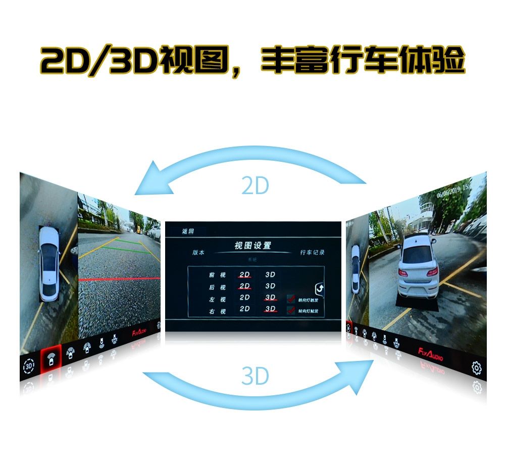 行车安全无小事!消除驾驶的视觉盲区是保证行车安全的重要因素。飞歌360°全景(3D版)升级功能,高配享受!