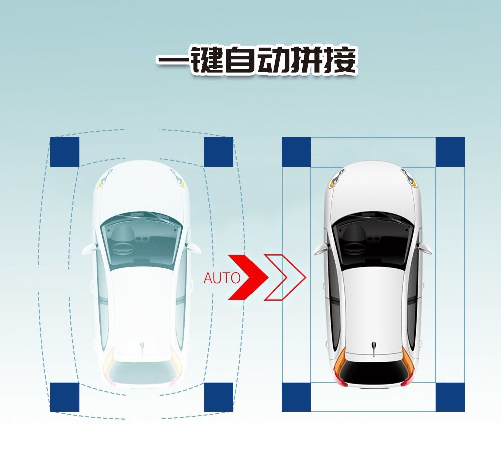 省却手动拼接的繁琐,飞歌360°全景(3D版)采用一键自动无缝拼接方式。支持一键自动校准,便捷调试,新手都可以操作的标定方式,无忧畅享安全旅途。