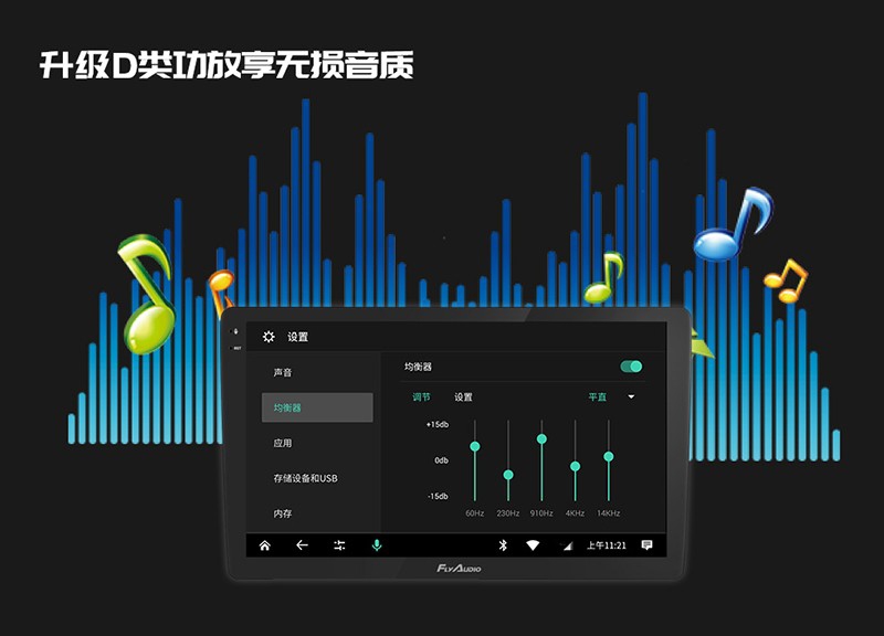 4×50W输出功率,升级D类功放,任意切换个性音乐风格,给你独特的享受。此外,支持多种音乐软件安装,在线音乐随时播放;支持无损音乐格式,畅享无损音质。