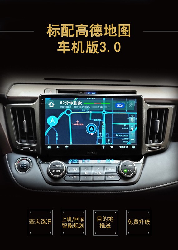 标配高德地图车机版3.0,专业级GPS定位精度范围<5m。支持实时路况,躲避拥堵;路线智能规划,多策略多路线目的地推送;免费在线升级、离线地图等。