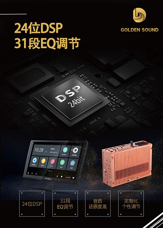 24bit高性能DSP音频数字处理,运算能力更强更快,精度越高,音频输出还原更真实生动,并且配置31段EQ调节,车主可对每个频段进行专业、个性化地调试。飞歌X1智能音乐车机打造真正的调音天师,定制专属于你的音乐。