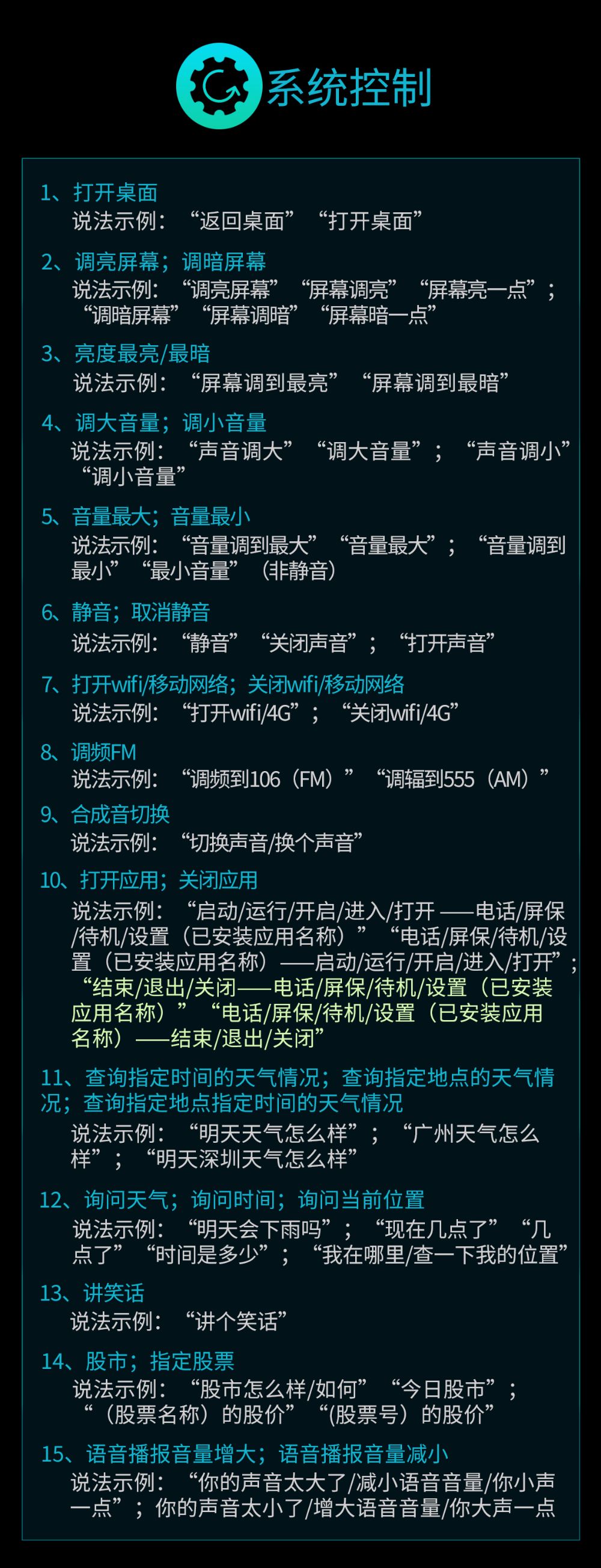 点击对话框“?”按钮,可查看车机部分唤醒词。