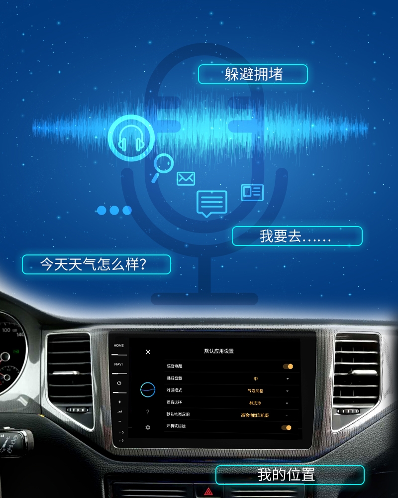 全局智能语音声控,支持语音操作蓝牙、查询天气、系统控制、听音乐、导航等多场景声控指令;支持点击语音控制APP、部分车型兼容原车语音按键唤醒声控、说出“你好小飞”或自定义关键词即可唤醒声控,解放双手!
