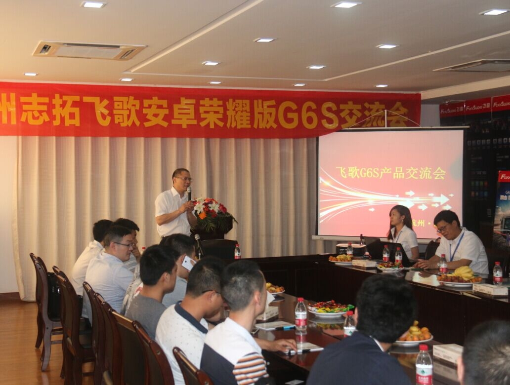 领略到新概念之后,飞歌华东区经理步士成,为会上带来飞歌安卓荣耀版G6S的产品详解。让大家对于G6S这款安卓车机,有了更深的认识。志拓销售部经理徐成荣先生随后,为现场在座人士拿出了飞歌安卓荣耀版G6S在浙江市场的运作方案,为G6S在浙江登陆之后制定了蓝图。最后,山东烟台悦声总经理曲昌杰,也现场分享了山东烟台地区“网络零售安装案例”,和在座人士,共同探讨车载导航业的服务。