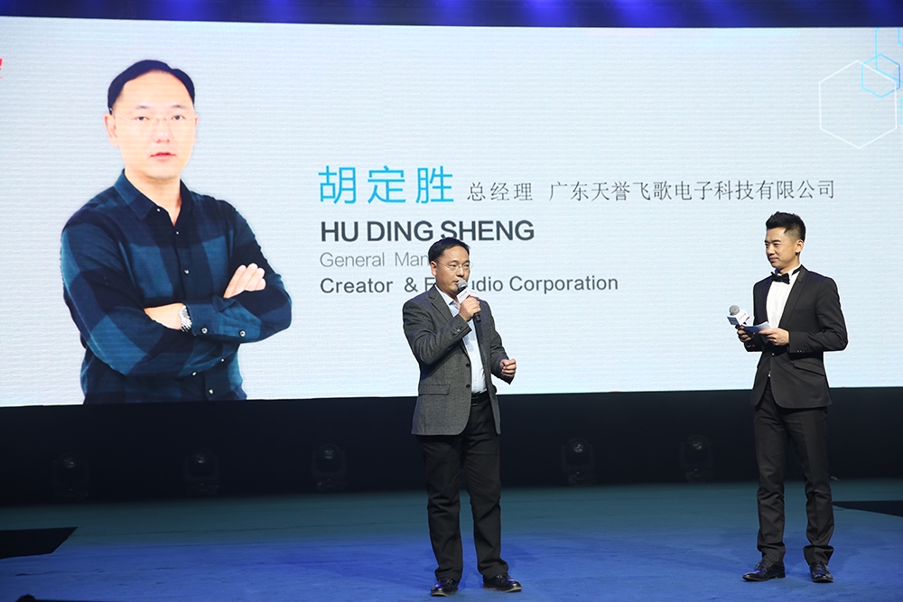 天誉飞歌总经理胡定胜先生,现身为大家带来飞歌智能工业4.0的概念和实践。在新品发布之际,向现场人士360°展现飞歌产品背后的实力,引起全场人士的关注,这个也许是大家在发布会现场的一个意外之喜,千里之外,却看到飞歌工厂的场景。