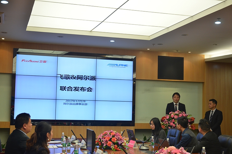 2017年12月28日下午 15时许,“天作之合”Flyaudio飞歌&Alpine阿尔派轻奢·音尚版媒体发布会暨战略合作签约仪式在飞歌大楼正式召开,飞歌后装事业部总经理梁泽源先生、销售总监朱冠西先生、品牌部赵之桔先生,阿尔派电子(中国)有限公司品牌事业部/市贩部部长幸田刚先生、副部长吕明刚先生及潘志滨先生等出席了会议,现场十多家媒体共同见证首款轻奢·音尚版正式面向市场发售!