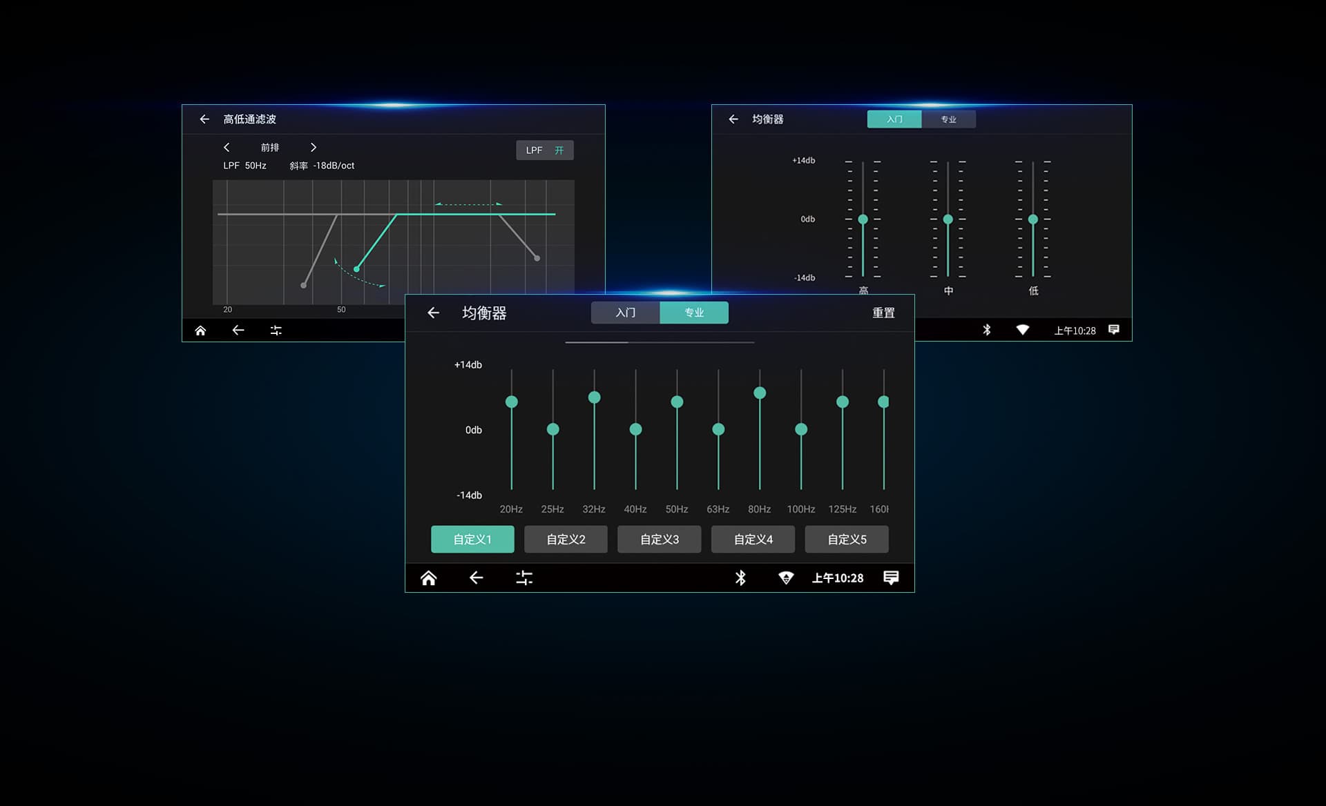 24bit高性能DSP音频数字处理,运算能力更强更快,精度越高,音频输出更真实,并且配置31段EQ调节,对每个频段都可进行专业调试,真正的调音天师,让声音每个细节真实还原。音场聚焦,通过音频通道延时设定,尊享"皇帝位";支持FLAC/WAV等无损格式音乐,同步专辑封面显示,只为爱音乐的你