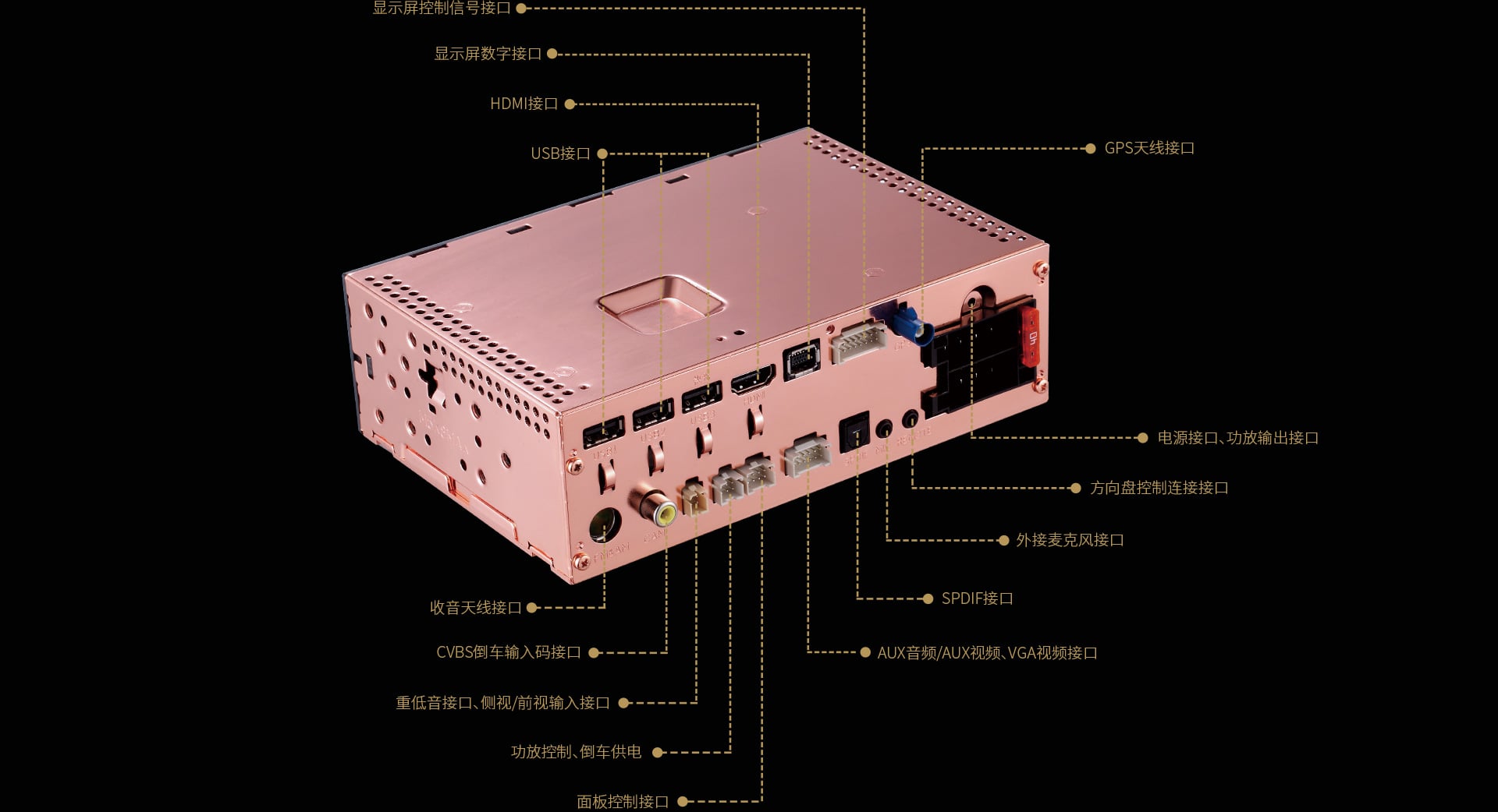 超级拓展:SPDIF数字⾳频输出(超低失真)、AUX、 HDMI高清互联