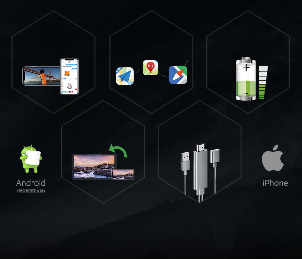 Flyaudio飞歌Xenon1智能音乐车机采用HDMI输入模式,低损化可确保传输音视频获得更佳的输出效果,手机可以通过HDMI实现投屏,畅享视界